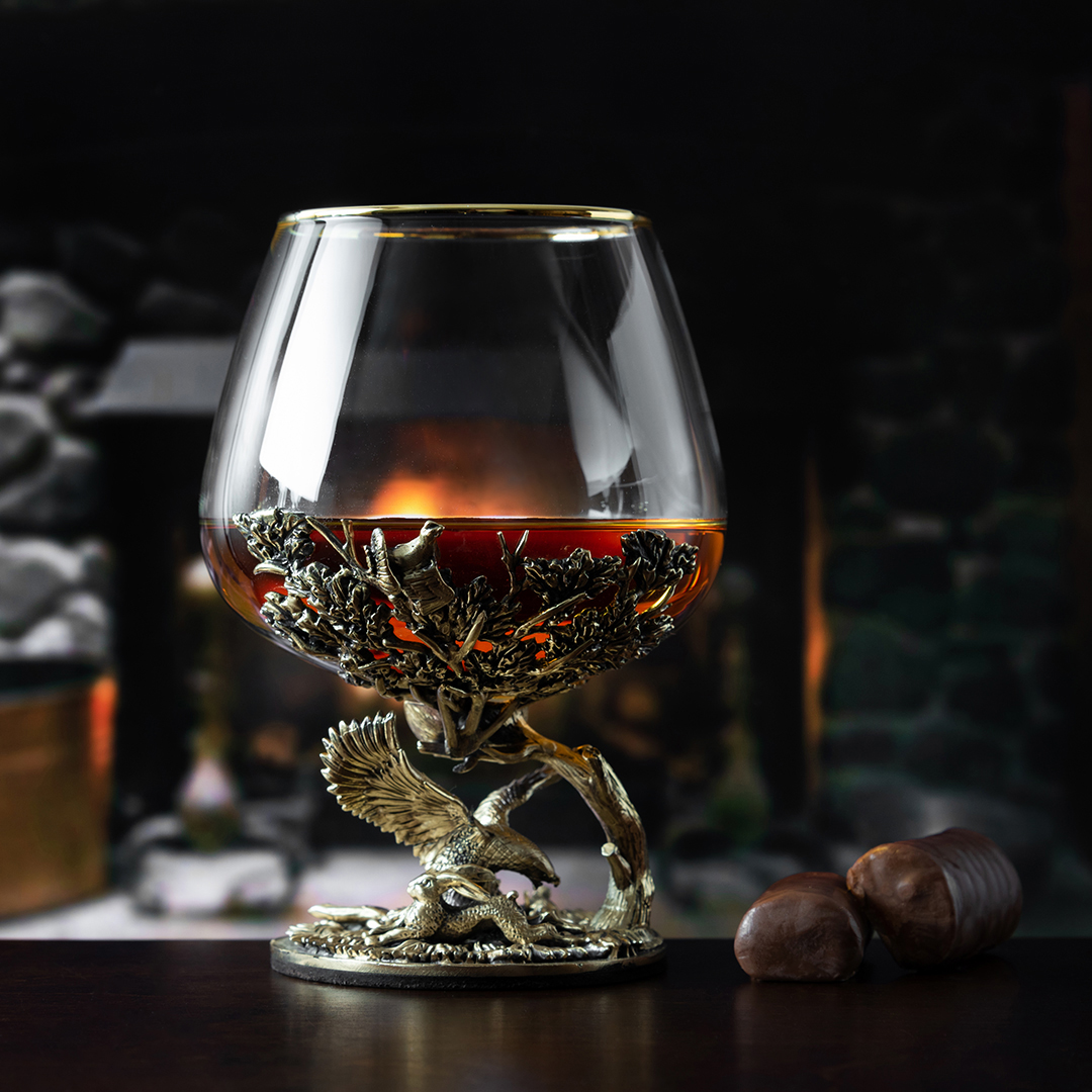 Бокал для коньяка ручной работы с литым основанием-ножкой в виде сказочного замка и Дракона - громкий респект человеку, родившемуся в год Дракона. Огнед