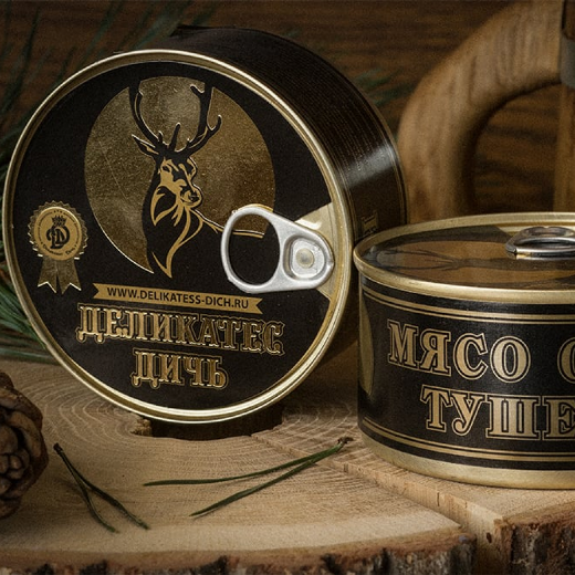Тушеное мясо Оленя - вкуснятина! В составе:оленина, жир животный, лук репчатый, соль поваренная пищевая, перец черный, перец душистый, лист лавровый. Вес 325 грамм