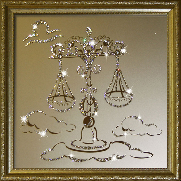 Каждый знак Зодиака соответствует далекому недостижимому созвездию на небе... и мерцающему узору из хрустальных кристаллов всемирно известной марки на Земле! Картина выполнена методом выборочной холодной абразивной обработки зеркала (пескоструй) с дальнейшей инкрустацией кристаллами. Прилагающийся сертификат удостоверяет подлинность страз Swarovski.