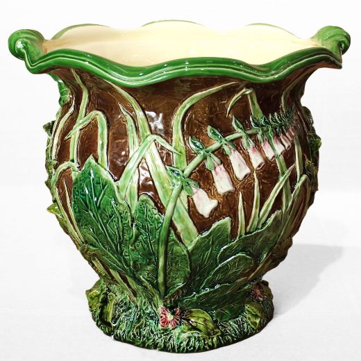 В этом кашпо и срезанные в букеты, и комнатные растения будут великолепно смотреться. Здесь использовалась поливная техника и роспись.