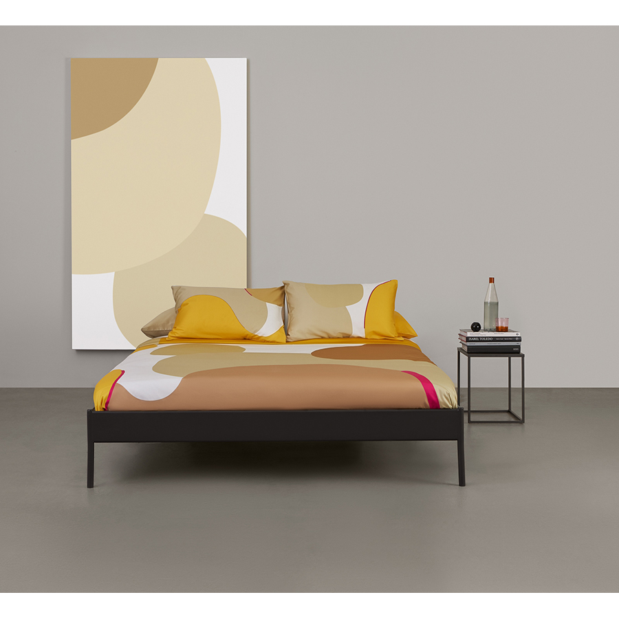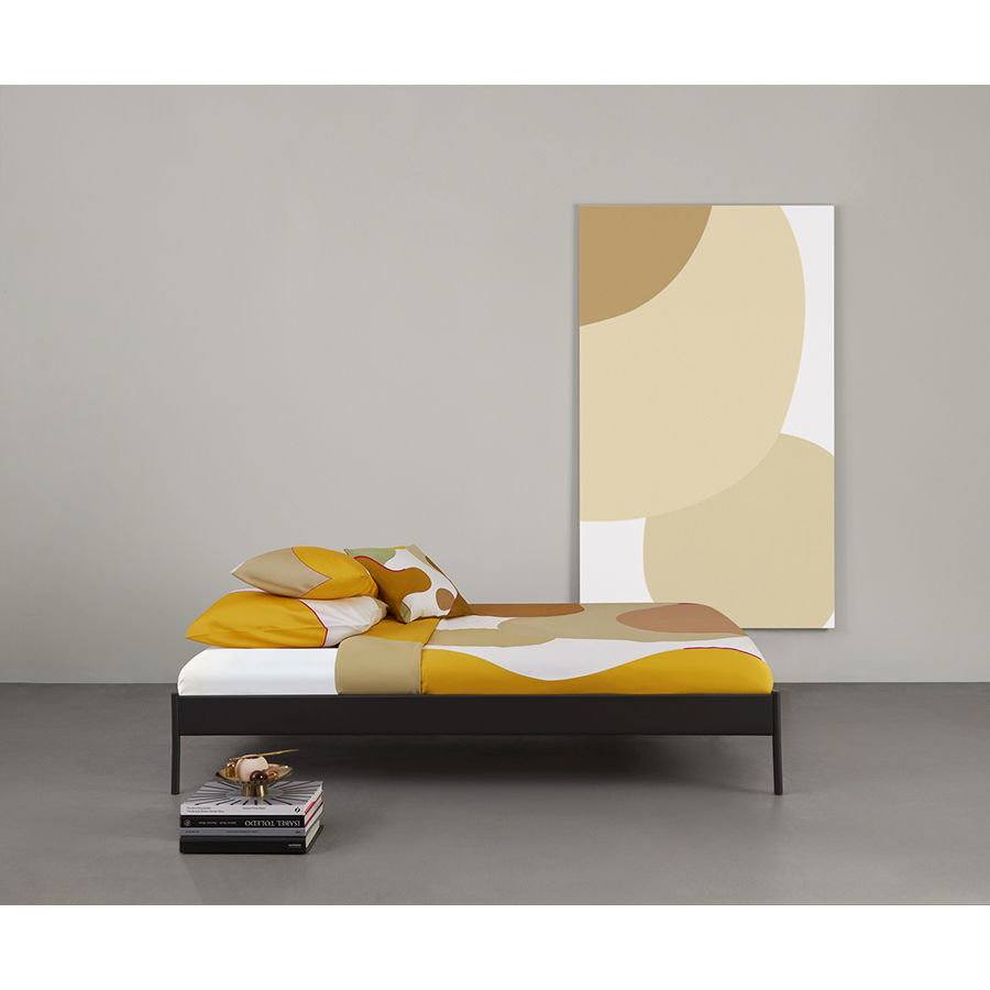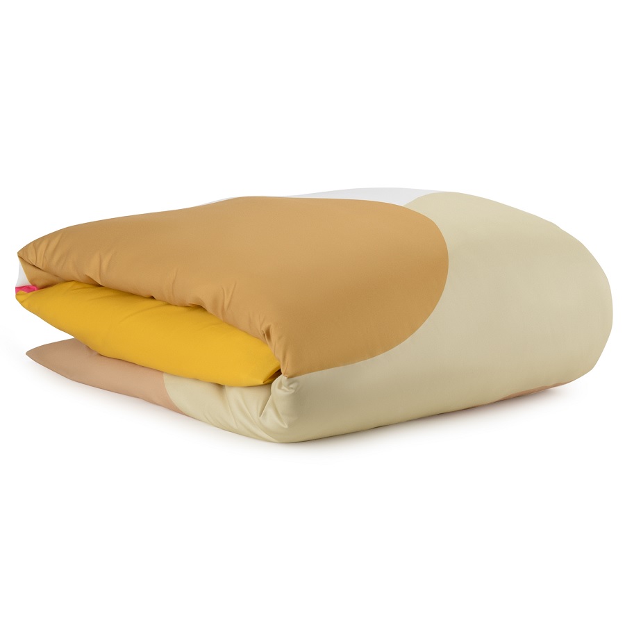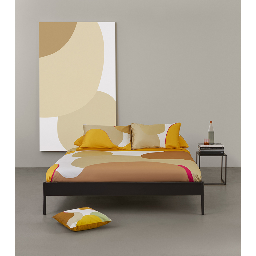 Комплект постельного белья двуспальный из сатина горчичного цвета с авторским принтом из коллекции freak fruit