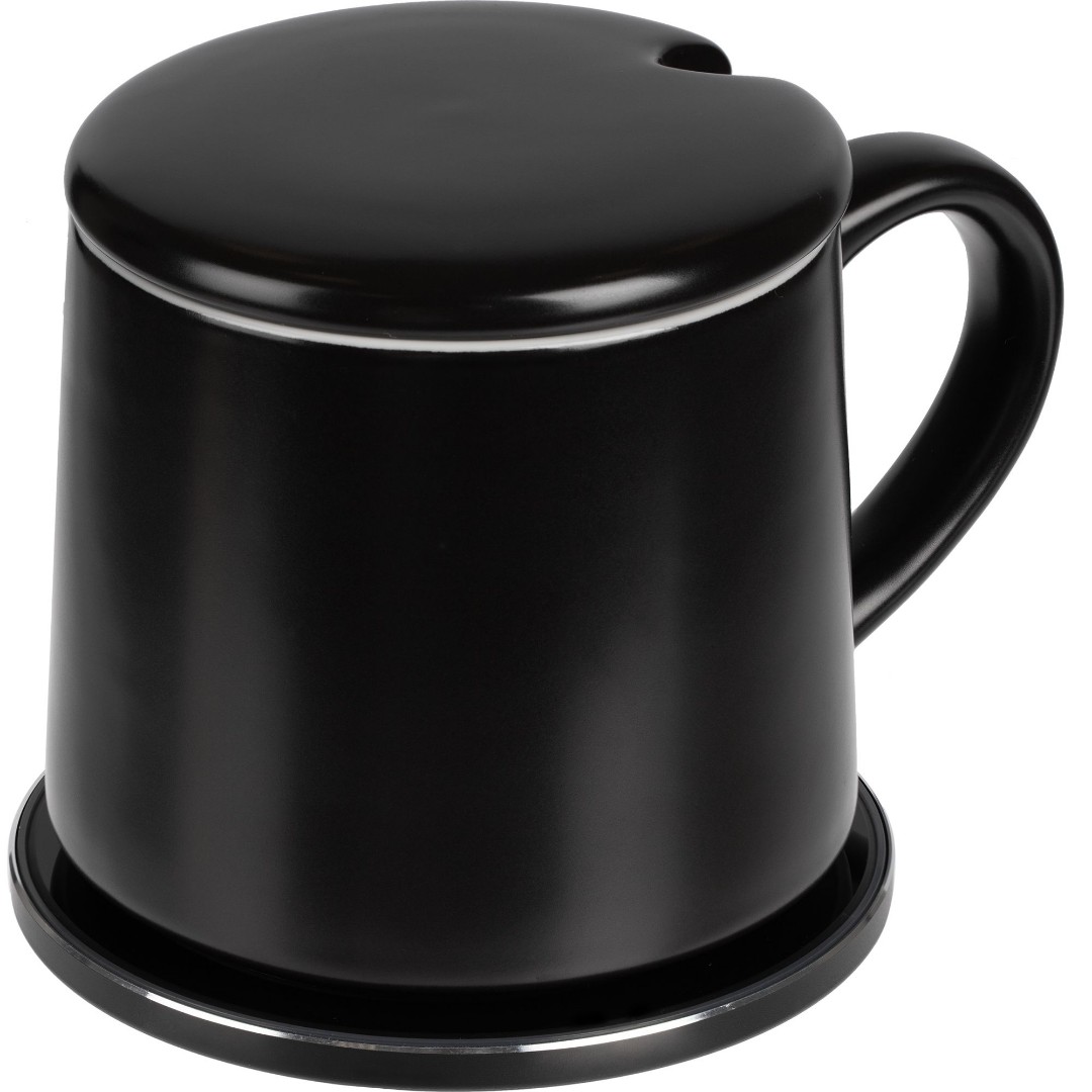 Специальная кружка имеет крышку, чтобы напиток не остывал, а если ее поставить на подставку, то в кружке будет поддерживаться температура 55 °C, что оптимально для питья. Стоит убрать кружку с платформы, как подставка превратится в беспроводную зарядку для смартфона, поддерживающего протокол Qi. Зарядка начнется автоматически при размещении смартфона на индукционной площадке. USB-порт для проводной зарядки расположен в торце устройства.