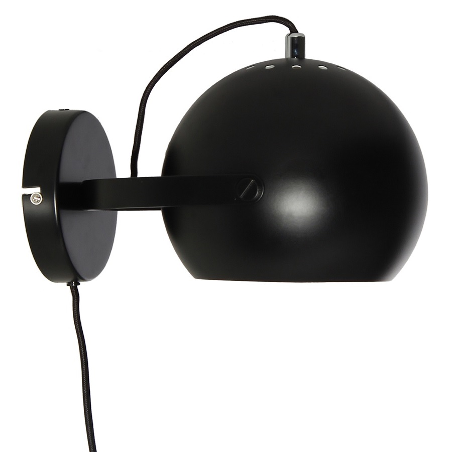 Лампа настенная ball с подвесом, ?18 см, черная матовая, черный шнур