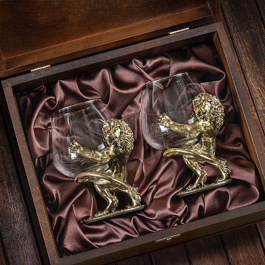 В наборе 2 бокала для коньяка в деревянной шкатулке из массива с шёлковым ложементом