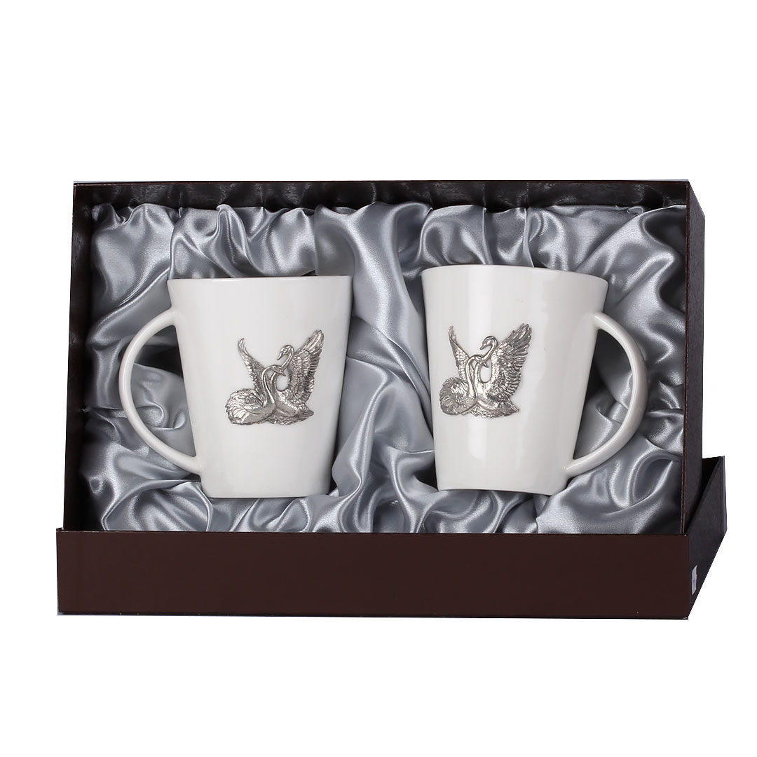 В наборе 2 чашки (английский фарфор) с накладками, футляр из дизайнерского картона с шелковым ложементом.