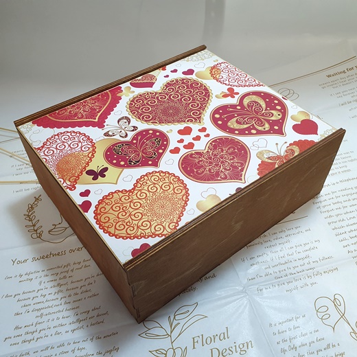 Деревянная шкатулка с яркой выдвигающейся крышкой с романтичным сюжетом использована в подарочном наборе вместо упаковки. В дальнейшем шкатулка послужит для хранения, например, специй на кухни, или же мелких швейных принадлежностей. Осталось только открыть коробку и ахнуть от восхищения...