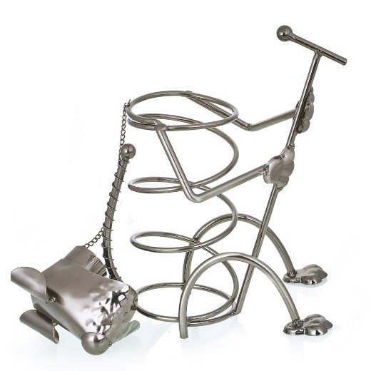 Высота в собранном виде 33см, материал - металл, в подставку помещается бутылка с диаметром дна до 8,5см.