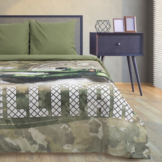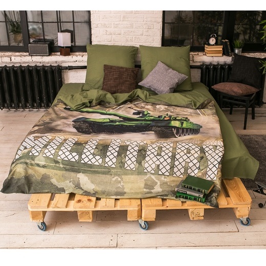 В этом комплекте удачно сочетаются эксклюзивный дизайн, высокое качество исполнения, натуральные материалы и внешняя привлекательность – словом, в нем все, что нужно для оформления постели в полном соответствии с собственными вкусами. Этот необычный танковый полигон, в который превратится ваша постель, сшит из стопроцентного нежнейшего хлопка - ткани поплин. Этот практичный и долговечный материал отличается особым расслабляющим воздействием на тело – ваш сон будет спокойным и полноценным, как никогда.