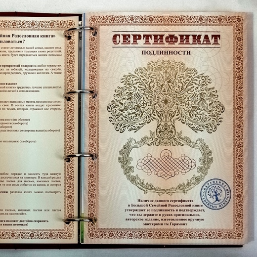 Родословная, семейная летопись... - назовите как хотите, но суть останется прежней - в уникальной книге будет собран, а в дальнейшем продолжит пополняться, ваш бесценный семейный архив. В приложение к родословной бесплатный сертификат на ее заполнение!