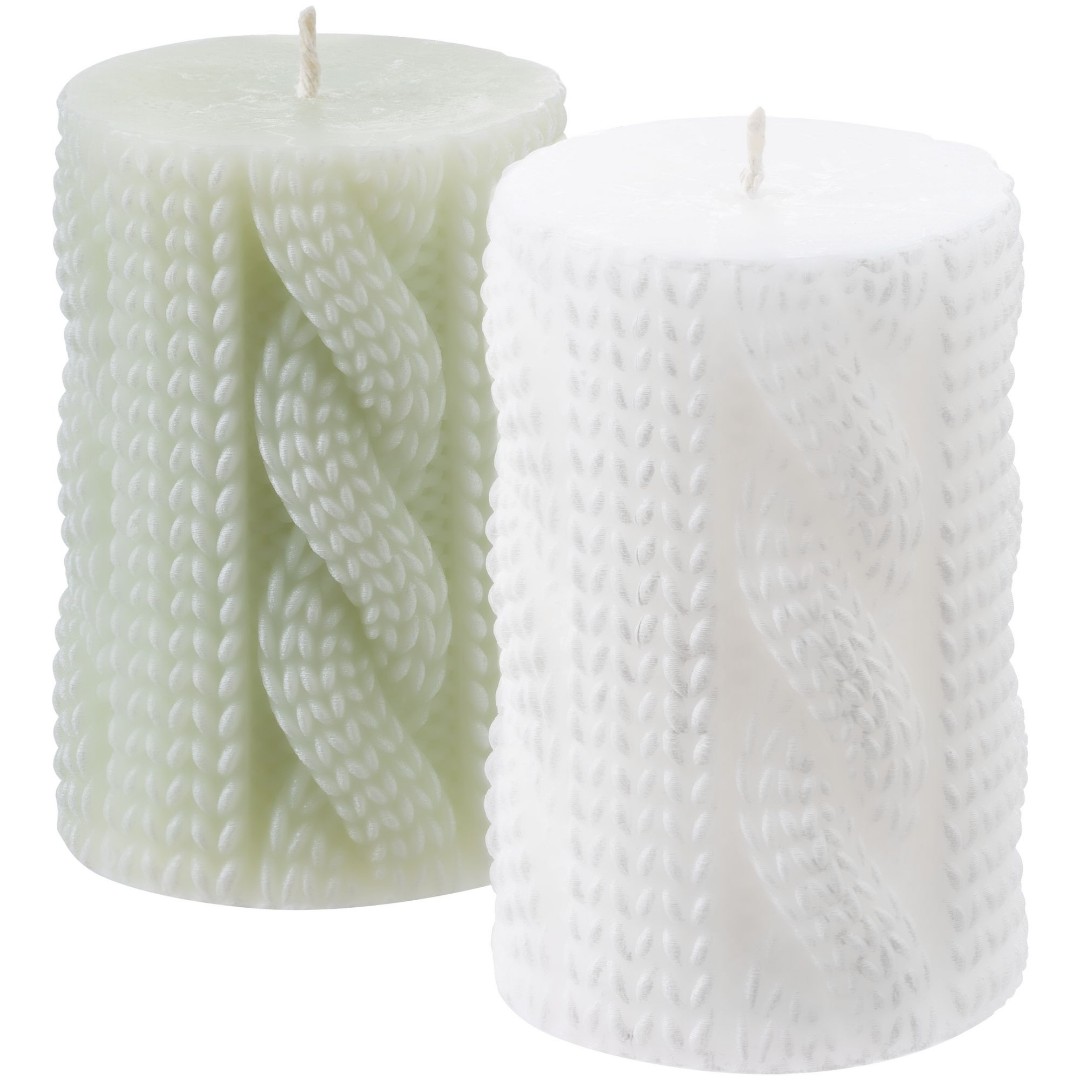 Невероятно романтичная свеча словно связана - рельефный рисунок, естественная форма и цвет делают ее еще более уютной. А мечты при зажженной свече обычно сбываются...